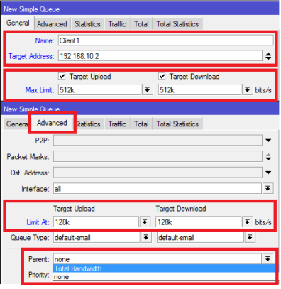 pada parameter Target Upload Max-Limit dan Target Download Max-Limit.